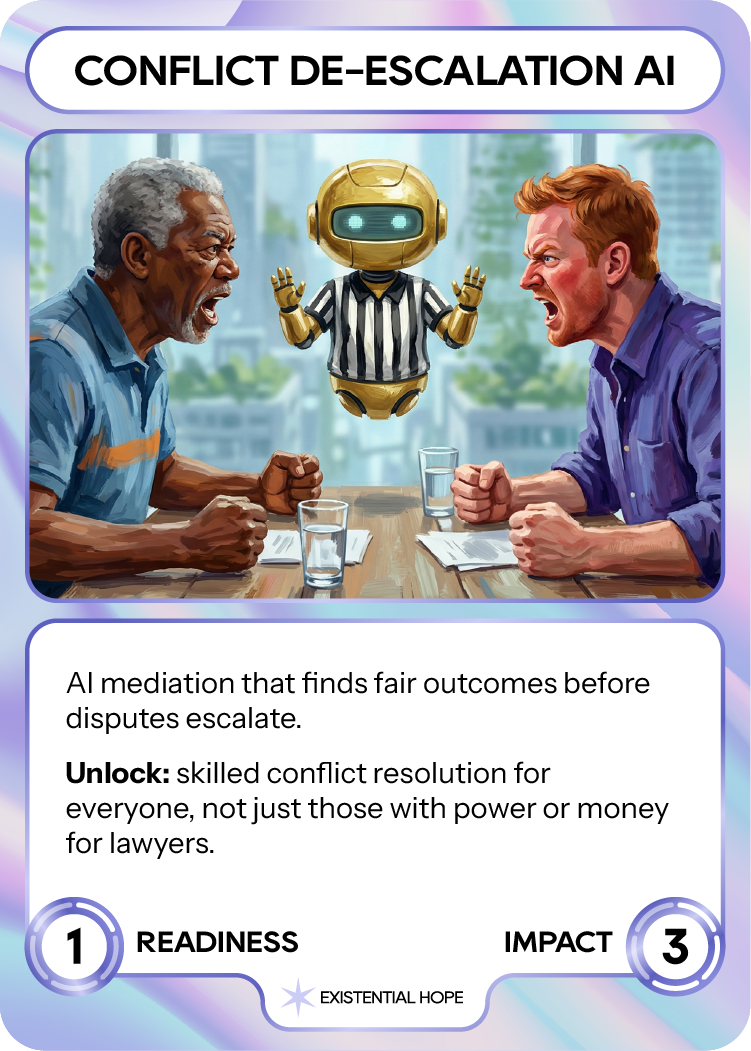 Most formal systems for resolving disputes are adversarial by design: courts produce winners and losers, and even skilled mediators are expensive and scarce. Many conflicts, from workplace tensions to community disagreements, either go unresolved or are settled in ways that reflect power dynamics more than fair outcomes.